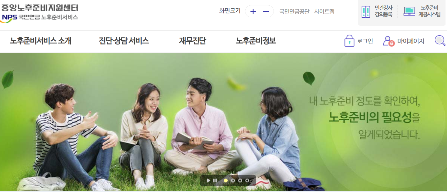 지금 바로 국민연금공단의 노후준비서비스를 이용하여 행복하고 안정된 미래를 준비해보세요!