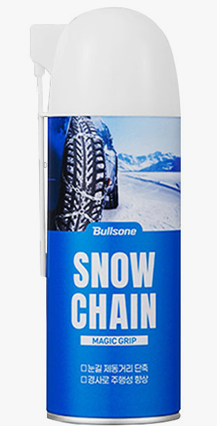 스프레이 체인은 타이어 표면에 특수 코팅 물질을 분사해 마찰력을 증가시킵니다. 일반 타이어도 스프레이 체인을 뿌리면 눈길에서 마찰계수가 높아져 스노우 타이어와 유사한 효과를 볼 수 있습니다. 짧은 거리나 급작스러운 눈길에서 즉각적인 대응이 가능하다는 점이 가장 큰 장점입니다.