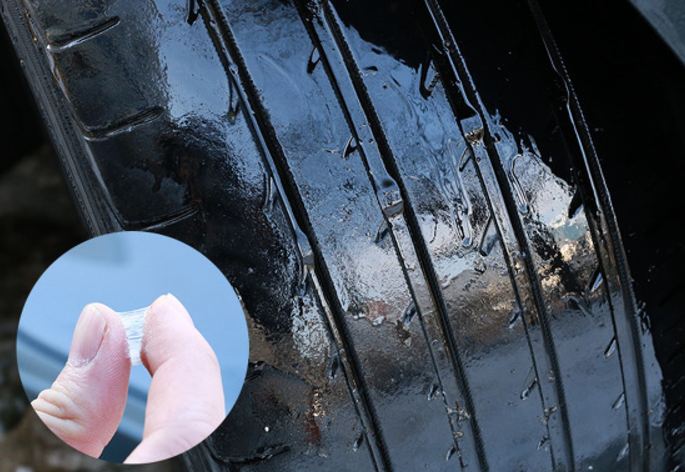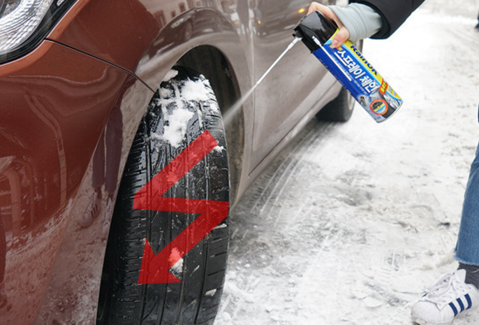 2. 타이어 접지면에 고르게 분사: 구동 바퀴에 S자로 뿌리면 효과적입니다.