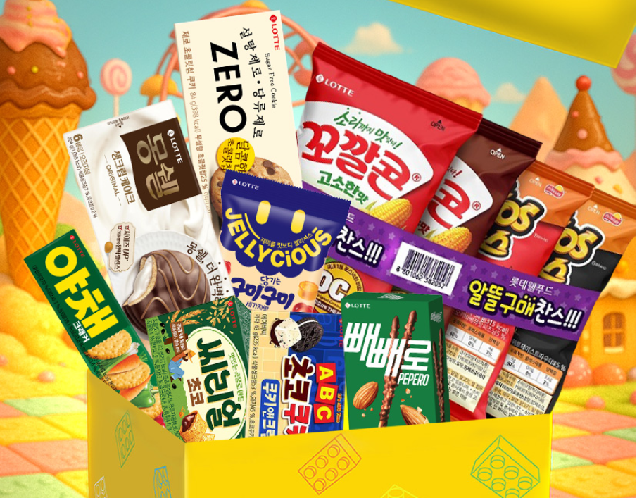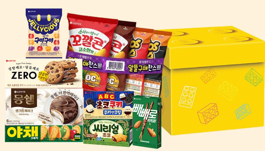 롯데온에서 판매 중인 레고 스낵박스 11종 간식세트에는 다양한 간식이 담겨 있다. 아래는 대표적인 구성품이다: