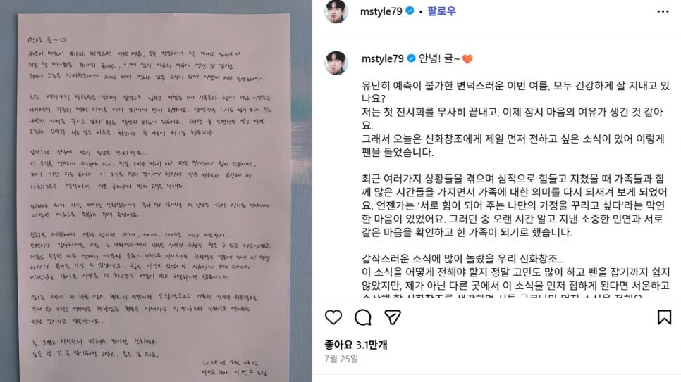 신화의 영원한 ‘만능 엔터테이너’에서, 이제는 한 가정의 남편이자 아빠가 된 이민우. 인생의 새로운 장을 여는 그와 예비신부, 그리고 아이들의 앞날에 축복이 가득하길 바랍니다.