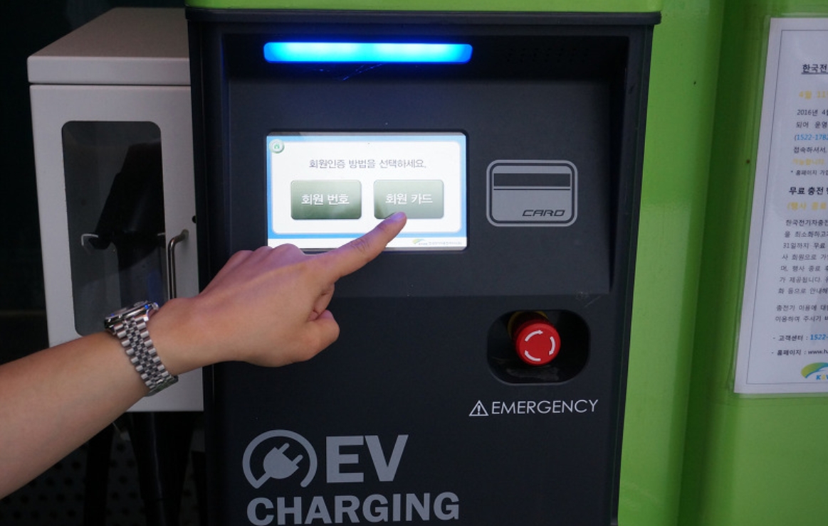 1. 충전기 화면 활성화 및 회원 인증: 회원 카드를 태그하거나, 비회원은 모바일 결제를 사용합니다.