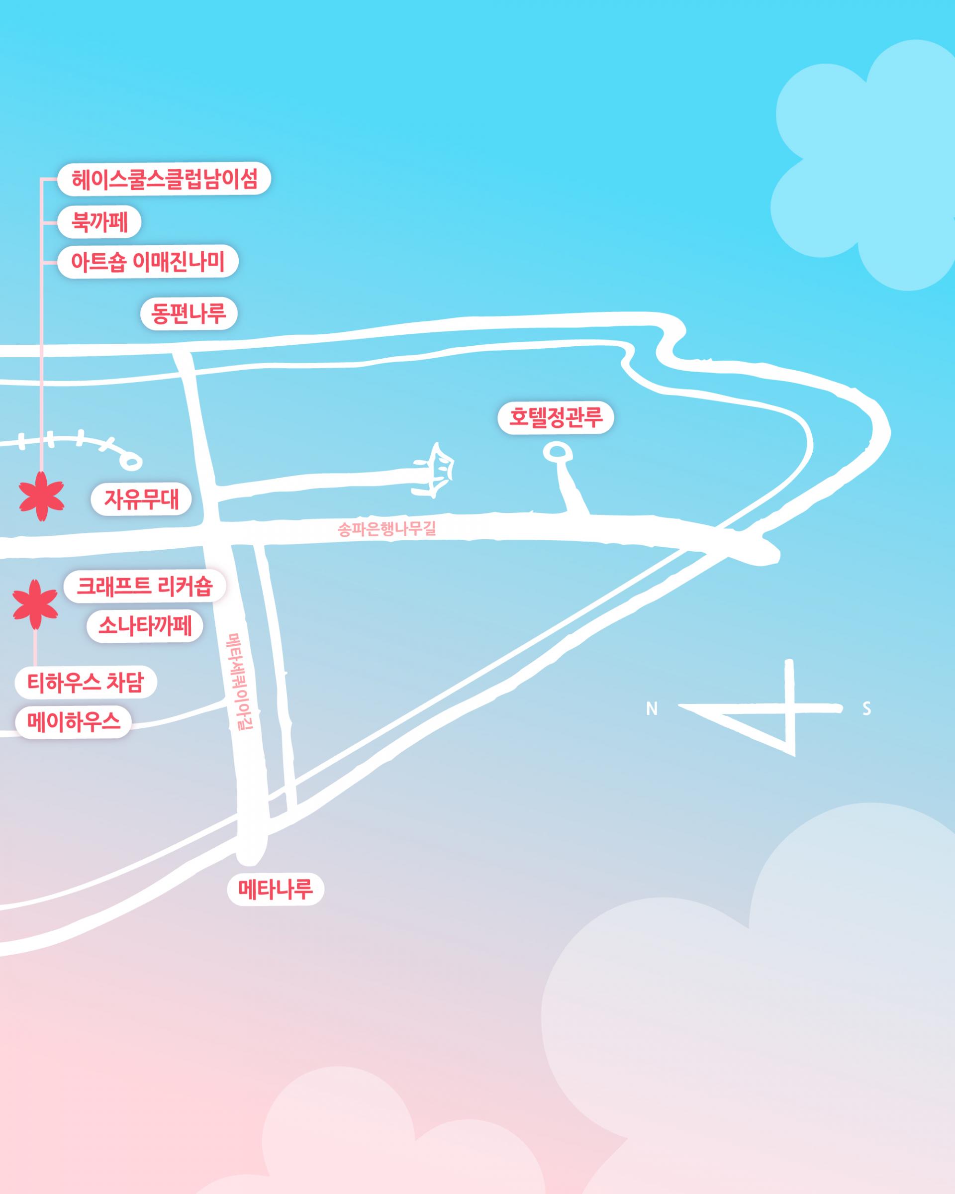 - 벗(友)꽃 한입: 축제 현장에서 남이섬 특유의 먹거리를 맛볼 수 있는 특별한 식음 공간이 마련된다.