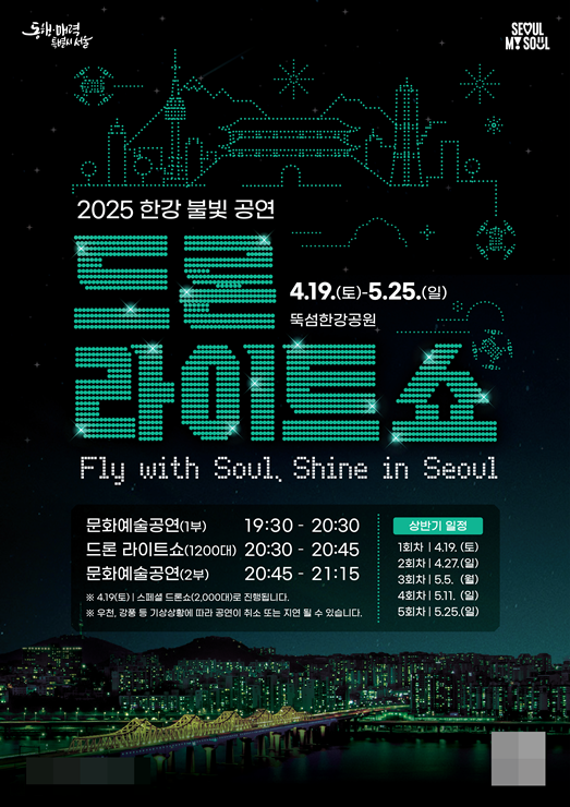 서울의 야경을 특별하게 물들이는 2025 한강 드론 라이트 쇼가 돌아왔다. 올해는 더욱더 대규모로 준비된 드론 퍼포먼스와 다채로운 문화예술 공연이 봄밤을 화려하게 장식할 예정이다. 이번 행사는 4월 19일부터 5월 25일까지 뚝섬 한강공원에서 총 5차례에 걸쳐 개최된다. 첫 공연에서는 특별히 2,000대의 드론이 아름다운 밤하늘을 수놓으며 관객들의 눈과 마음을 사로잡을 준비를 마쳤다.